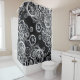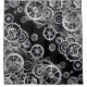 Duschvorhang im Steampunkstil, schwarzer Hintergrund mit dreidimensionalen silbernen Gängen.