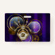 Steampunkspinne aus Gold und Stahl mit antiken Uhren mit vergoldeten Gängen auf lila, gestreiftem, texturiertem Hintergrund mit Linsen und Messinggetrieben. Steampunkstil.