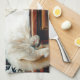 Weiße Furry Steampunk Katze mit seinem niedlichen braunen Hut und seiner Brille. Die Katze sitzt auf einer Theke oben in der Schiffsküche, gewartet für seine Teezeit. Hinter ihm liegt das Schiffsfenster, an dem ein Oktopus vorbeikommt.