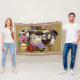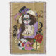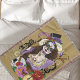 Tag der Toten, die den Zuckerschädel tragen. überwiegend lila gekleidet. Um sie herum sind Gänge, Schädel, Uhr, Rose und Schlüssel.