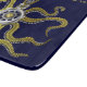Das tentacled steampunk Seeungeheuer auf diesem kundenspezifischen Schneidebrett hat acht Draht ähnliche Goldanhänge, einen zentralen silbernen Gang und viel der Gänge und der Bolzen, die seinen Kopf, Augen und Saugschalen bilden. Es ist, eine Roboterkrake/kraken, ein Metallmaschinenmonster für jedermann, das geeky Science Fiction-/Fantasiegeschöpfe mag. Blaue Hintergrundfarbe und -text ist der kundengerechter (oder Löschungsbeispieltext, zum er zu verlassen zu löschen).