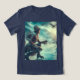 This elegant winter messenger travels along the ice on ice skates in this steampunk Victorian fantasy world towers a tower in this detailed fantasy artwork shirt.