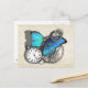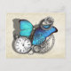 Großartiges Dampfpunk-Design mit aquamarinem blauen Schmetterling, silberner Taschenuhr, Ketten und Zahnseide. Sieht fantastisch aus auf diesen Postkarten.