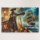 Ein Vintager, Viktorianischer Steampunkpirat mit Uhrwerk-Gängen in lebendiger Blues, Bronzen und Gold zum Segeln auf dem Ozean des Weltraums auf der Suche nach sci-if Fantasy nautical adventure.