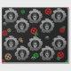 Cooles Verpackungspapier mit einem Steampunk-Thema. Der Hintergrund ist tief schwarz und das Design beinhaltet Skulls und Gänge. Die Weihnachtsfarben Rot, Grün, Gold und Silber machen dieses Geschenkpapier perfekt für den Urlaub und darüber hinaus.