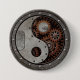 Diese einzigartige Steampunk Yin Yang Illustration zeigt alte Rostgänge und Festmetallnieten. Eine Seite des Yin-Yangs scheint das Innere einer komplexen Maschine zu sein, während die andere Seite das Aussehen eines soliden Stahls hat. Metallische Texturen und rostende Farben verleihen diesem Symbol ein ausgeglichenes industrielles Ambiente. Dieses einzigartige Design ist eine schöne und stilvolle Interpretation dieses alten Symbols.