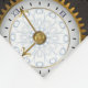 Antike Tasten und Tasten mit Gold- und Messinggetrieben, mit mechanischen, Steampunkdrachenfliegen auf braunem, gestreiften Hintergrund dekoriert.