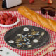 Steampunkdrachenfliegen auf braunem, gestreiften H Pappteller