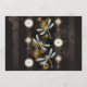 Antike Tasten mit Gold- und Messinggetrieben, mit mechanischen Steampunkdrachenfliegen auf braunem, gestreiften Hintergrund dekoriert.