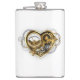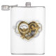 Mechanisches, volumetrisches, steampunktes Herz mit Druckmesser, Stahl- und Goldgetrieben auf weißem Hintergrund. Steampunkstil.