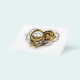 Mechanisches, volumetrisches, steampunktes Herz mit Druckmesser, Stahl- und Goldgetrieben auf weißem Hintergrund. Steampunkstil.