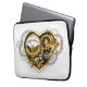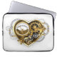 Mechanisches, volumetrisches, steampunktes Herz mit Druckmesser, Stahl- und Goldgetrieben auf weißem Hintergrund. Steampunkstil.
