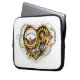 Mechanisches, volumetrisches, steampunktes Herz mit Druckmesser, Stahl- und Goldgetrieben auf weißem Hintergrund. Steampunkstil.