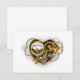 Mechanisches, volumetrisches, steampunktes Herz mit Druckmesser, Stahl- und Goldgetrieben auf weißem Hintergrund. Steampunkstil.