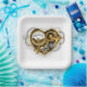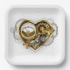 Mechanisches, volumetrisches, steampunktes Herz mit Druckmesser, Stahl- und Goldgetrieben auf weißem Hintergrund. Steampunkstil.