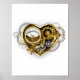 Mechanisches, volumetrisches, steampunktes Herz mit Druckmesser, Stahl- und Goldgetrieben auf weißem Hintergrund. Steampunkstil.