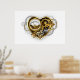 Mechanisches, volumetrisches, steampunktes Herz mit Druckmesser, Stahl- und Goldgetrieben auf weißem Hintergrund. Steampunkstil.