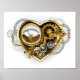 Mechanisches, volumetrisches, steampunktes Herz mit Druckmesser, Stahl- und Goldgetrieben auf weißem Hintergrund. Steampunkstil.