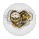 Mechanisches, volumetrisches, steampunktes Herz mit Druckmesser, Stahl- und Goldgetrieben auf weißem Hintergrund. Steampunkstil.