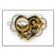 Mechanisches, volumetrisches, steampunktes Herz mit Druckmesser, Stahl- und Goldgetrieben auf weißem Hintergrund. Steampunkstil.