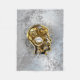 Konzeptioneller, mechanischer, menschlicher Kopf mit antiken Manometer und Metallgetrieben vor grauem industriellem Hintergrund. Steampunkstil.