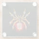 Mechanische Steampunkspinne mit Gold, Messinggetrieben und eine rote Glühlampe auf schwarzem Hintergrund. Steampunkstil.