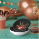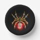 Mechanische Steampunkspinne mit Gold, Messinggetrieben und eine rote Glühlampe auf schwarzem Hintergrund. Steampunkstil.