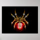 Mechanische Steampunkspinne mit Gold, Messinggetrieben und eine rote Glühlampe auf schwarzem Hintergrund. Steampunkstil.