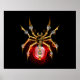 Mechanische Steampunkspinne mit Gold, Messinggetrieben und eine rote Glühlampe auf schwarzem Hintergrund. Steampunkstil.