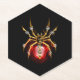 Mechanische Steampunkspinne mit Gold, Messinggetrieben und eine rote Glühlampe auf schwarzem Hintergrund. Steampunkstil.