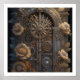 Steampunktür mit Metallgetrieben und Blume wunderschöne ai art.