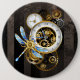 Steampunkuhr mit mechanischer Libelle Button