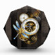 Steampunkuhr mit mechanischer Libelle Fotoblock