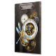 Steampunkuhr mit mechanischer Libelle Klemmbrett