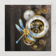 Steampunkuhr mit mechanischer Libelle Menükarte