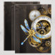 Steampunkuhr mit mechanischer Libelle Menükarte