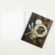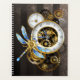 Antiquitätendiale mit Gold- und Messinggetrieben, mit mechanischer Libelle auf braunem, gestreiftem Hintergrund dekoriert. Steampunk.