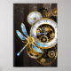 Steampunkuhr mit mechanischer Libelle Poster