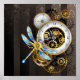Antiquitätendiale mit Gold- und Messinggetrieben, mit mechanischer Libelle auf braunem, gestreiftem Hintergrund dekoriert. Steampunk.