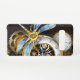 Antiquitätendiale mit Gold- und Messinggetrieben, mit mechanischer Libelle auf braunem, gestreiftem Hintergrund dekoriert. Steampunk.