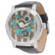 Steampunkuhr und türkisfarbene Rose auf Streifen Armbanduhr