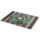 Gemusterte, antike Uhr mit Schmuck, goldene Stunden und lateinische Zahlen mit türkisfarbenen Rose auf braunem, gestreiften Hintergrund. Steampunkstil.