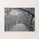 Eine schneebedeckte Fußbrücke, die zu den Charles River führt