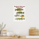 Poster für Stegbone's Fish Camp mit Bildern von original Aquarellen von Thom Glace von einem Smallmoth und Largemouth Bass, Black Crappie, Bluegill und Chain Pickerel.