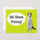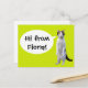 Ein heller limiger grüner Hintergrund und eine lustige Katze stehend auf den Hinterbeinen sorgen für eine lustige Postkarte. Fügen Sie der Sprechblase Ihren eigenen, individuellen Text hinzu, um Ihre eigene personalisierte Postkarte zu erstellen, die perfekt für Katzenliebhaber, Tierärzte und Katzensitzer geeignet ist.