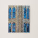 Mit diesem Bild vom Genfersee, Wisconsin der Ziegelsteine an der Ecke einer alten Kirche und den Bäumen, die in den Glasfenstern reflektieren, stellen Sie Ihr Rätsel in Frage. 8 x 10 Zoll Puzzle mit 110 Stücken.