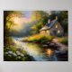 Dieses friedliche Gemälde eines Steinhauses, eingebettet in den Wäldern entlang eines sanft fließenden Flusses, fängt die Ruhe und den Charme der Natur ein. Mit reichen Texturen, erdigen Tönen und ruhigen Wasserspiegeln bringt es eine gemütliche, rustikale Atmosphäre in jeden Raum. Perfekt für die Einrichtung von Ferienhäusern, Naturliebhaber oder alle, die sich von idyllischen Waldlandschaften angezogen fühlen.