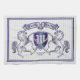 Schaffen Sie Ihr besitzen sehr aristokratisches Wappen, Emblem, Insignien oder Familienwappen mit diesem einfachen, klassischen Wappen oder Schildentwurf. Silbernes und dunkelblaues Schild wird durch ein Paar mittelalterliche Pferde angegrenzt und gekreuzt mit zwei Schwertern. Eine zusammenpassende Spitzenfahne hält Ihre individuellen Namen/Hochzeitsdatum/Geburtsdatum/Slogan- oder Kampfschrei. Das Schild hat Raum für Ihre Monogramminitiale. Ersetzen Sie den Beispieltext durch Ihre Selbst für ein personalisiertes Geschenk. Dieser geschlechtsneutrale Entwurf arbeitet für Familien, Paare und Einzelpersonen. Macht ein wunderbares Geschenk für internationalen Wappenkunde-Tag, mittelalterliche oder Fantasie-themenorientierte Partys, Reiterereignisse, Hochzeit, Jahrestag, Geburtstag, Ruhestand, Werbeaktion, der Vatertag, Junggeselle-Party, Polterabend, Abschluss und andere besondere Anlässe.