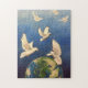 Weiße Tauben fliegen hoch über der Erde als Symbol des Friedens