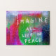 Relaxtes Puzzling - Dieses einzigartige Graffiti-Foto zeigt einen weißen Text "Imagine all live in Peace" auf einer bunten Graffiti-Mauer. Es ist ein schönes Stück Straßenkunst.